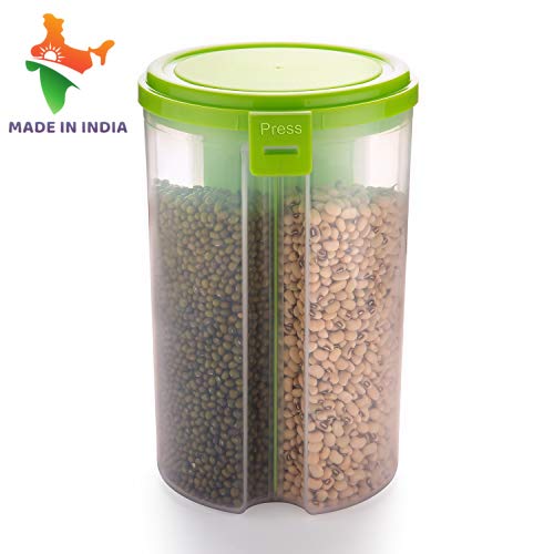 - Food Storage Jar with 3 sections. Keep 3 types of food in the same jar without mixing. Transparent plastic airtight (lock n lock) cereal storage dispenser container jar with 3 sections for cereals, snacks, pulses, dry fruits, and many more, available in multiple colors, will be given as per availability
